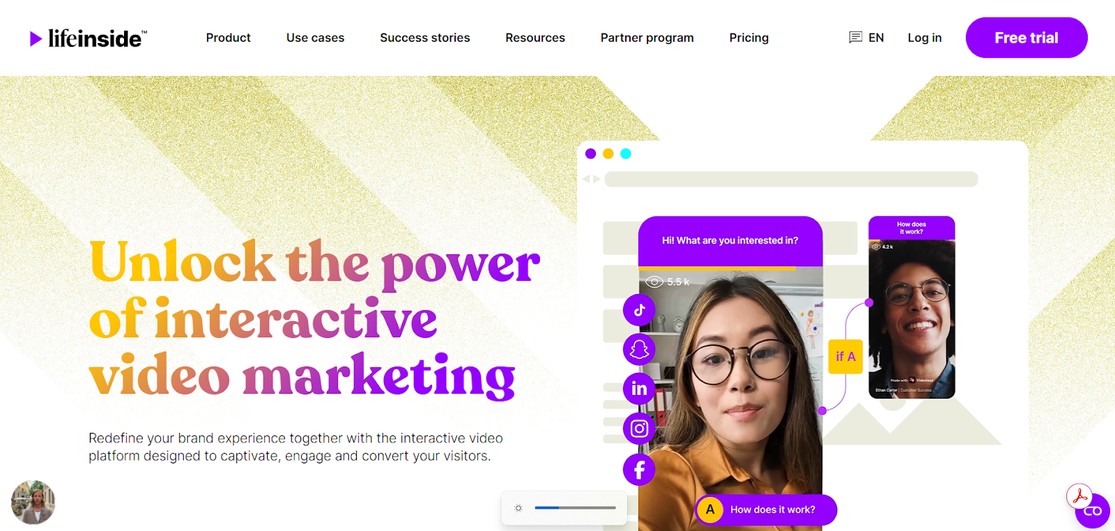 With personalized and interactive video experiences, Life Inside, an interactive video platform, assists public sectors, businesses, and organizations in transforming digital engagement and creating measurable outcomes. By allowing targeted video funnels and interactive elements for each audience or person, organizations and businesses can create personalized video experiences. Any person who is sent video content can have video content designed according to their interests, behavior, or communication requirements by including personalized or customized elements (such as clickable options, personalized introductions, and CTAs).